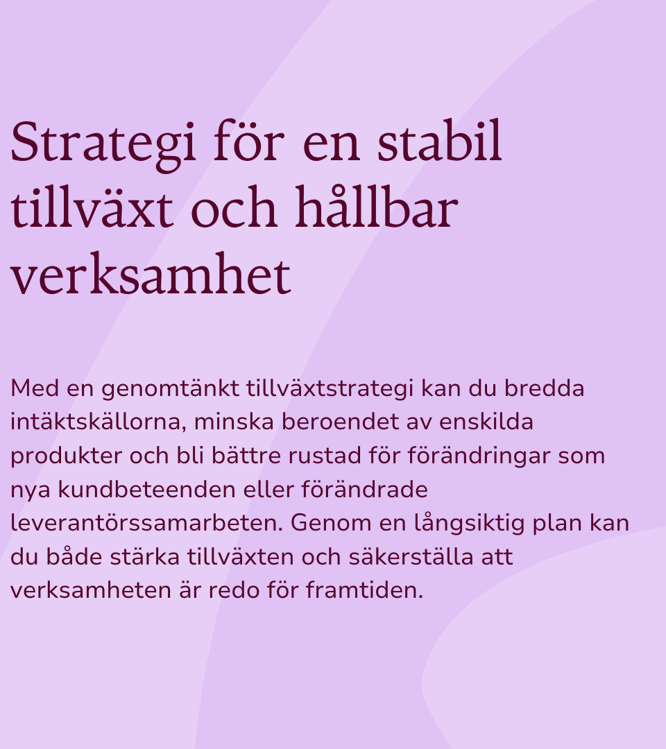 På den här sidan hittar du tjänster designade för att, bland annat, optimera inköp, prissättning, lagerhantering och tillväxtstrategier. Oavsett om du är i startgroparna eller redan har kommit en bit på vägen kan du få hjälp med att stärka din verksamhet, öka lönsamheten och säkerställa en hållbar framtid på ett sätt som passar dig. Genom ett brett nätverk som finns nära till hands går det även att sätta ihop ett team med flera kompetenser om det skulle behövas